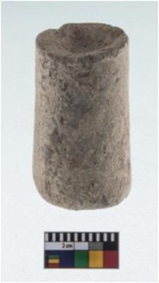 | Description / विवरण | A Complete speciemn of a grey ware cylindrical shaped terracotta weight with a concave depression at the apex. It s height is more than its base. |
