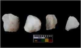 | Description / विवरण | There are n 4 Number of cores and are made up of Quartz. Three of them are having impressions of crested ridge flakes. |