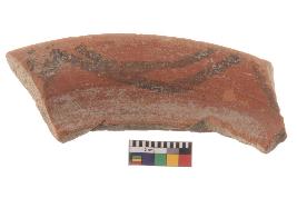 | Description / विवरण | Specimen of black on red ware with black decorative Joint parallel curves geometric painting. |