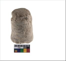 | Description / विवरण | A complete speciemn of a grey ware cylindrical shaped terracotta weight with an rounded edge and deep groove at the neck portion. It is height is less than its base |