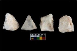 | Description / विवरण | There are n-4 of intact utilized flakes made up of Quartz. Some of them have bulge of percussion and some are flat flakes. |