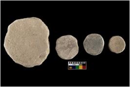 | Description / विवरण | Four specimen of disc. Three are grey and one is black in colour. Of which two are damaged at the periphery. |