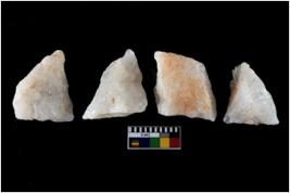 | Description / विवरण | There are n-4 of intact utilized flakes made up of Quartz. Some of them have bulge of percussion and some are flat flakes. |