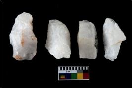 | Description / विवरण | There are n-4 of intact utilized flakes made up of Quartz. Some of them have bulge of percussion and some are flat flakes. |