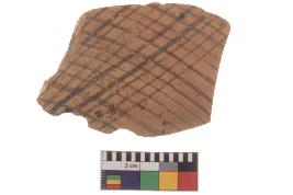 | Description / विवरण | Specimen of black on red ware with black decorative Lattice pattern geometric painting. |