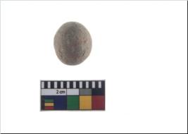 | Description / विवरण | A complete specimen of a terracotta made circular shaped birdshot |