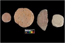 | Description / विवरण | Four specimen of disc. Two red and two grey in colour. Of which two intact and two broken. |