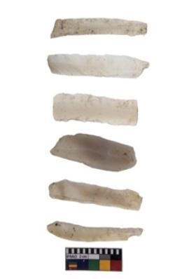 | Description / विवरण | Microlithic blades of varying sizes and raw material. Few blades are showing marks of utilisation. |