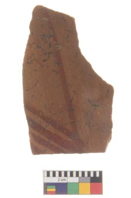 | Description / विवरण | Specimen of red ware with decorative geometric Linear Pattern painting. |