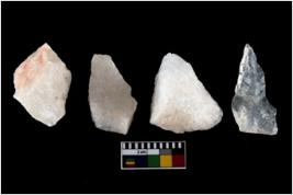 | Description / विवरण | There are n-4 of intact utilized flakes made up of Quartz. Some of them have bulge of percussion and some are flat flakes. |