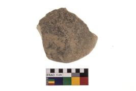| Description / विवरण | A broken specimen of a rectangular shaped mueller stone with battered surfaced. |