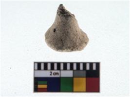 | Description / विवरण | A partially broken specimen of a conical object with flaring base and pointed apex. Probably stopper. |