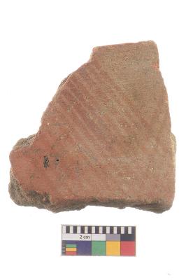 | Description / विवरण | Specimen of red ware with decorative geometric Linear Pattern painting. |