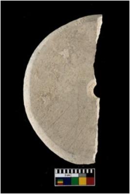 | Description / विवरण | A broken specimen of Toy cart wheel with perforation. |
