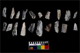 | Description / विवरण | There are n-20 of microliths, all of them are quartz. Some of them are partially broken. They show variation in colour, size and shape. Some of them are blunted back blades, points, triangles, trapezes, crescent and truncated blades. |