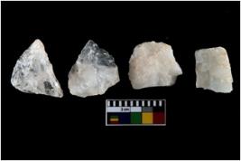 | Description / विवरण | There are n-4 of intact utilized flakes made up of Quartz. Some of them have bulge of percussion and some are flat flakes. |