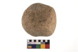| Description / विवरण | A partially broken specimen of a Hammer stone . It is roughly rounded in shape, used for grinding various substances. |