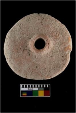 | Description / विवरण | A complete specimen of Toy wheel. It is red in colour with circular shape. It has perforation from both side. |