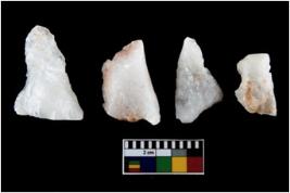 | Description / विवरण | There are n-4 of intact utilized flakes made up of Quartz. Some of them have bulge of percussion and some are flat flakes. |