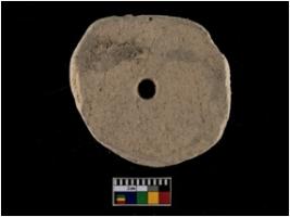 | Description / विवरण | A Complete specimen of a red ware roughly circular shaped terracotta perforated disc with even perforation. This object is having rough texture on both the surface. It appears to be wheel made. |
