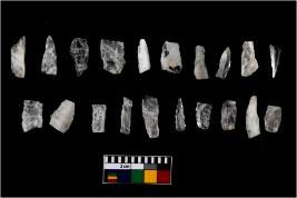 | Description / विवरण | There are n-20 of microliths, all of them are quartz. Some of them are partially broken. They show variation in colour, size and shape. Some of them are blunted back blades, points, triangles, trapezes, crescent and truncated blades. |