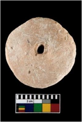 | Description / विवरण | A complete specimen of perforated toy wheel. It is red in colour with circular shape. |