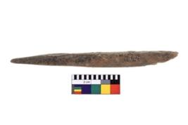 | Description / विवरण | A double- ended bone point, elongated biconical in shape with almost circular cross-section which is broken at one end and it has dark yellowish brown colour. |
