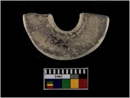 | Description / विवरण | A partially broken specimen of a black and red ware circular shaped terracotta perforated disc with even perforation. This object is having smmoth texture on both the surface. It appears to be of wheel made with well levigated clay and also well fired. |