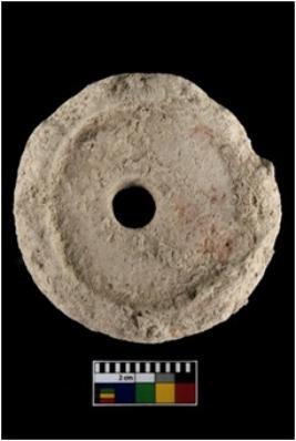 | Description / विवरण | A complete specimen of wheel. It is red in colour with perforation. |