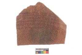 | Description / विवरण | Specimen of red ware with decorative geometric Linear Pattern painting. |