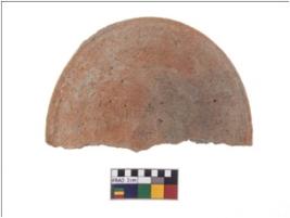 | Description / विवरण | A partially broken specimen of a terracotta lamp, with triangular rim and small circular base which shows a clear string mark where it has been cut from the potter s wheel. It is made of red ware, fine fabric, well-fired. |
