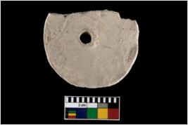 | Description / विवरण | A partially broken specimen of perforated wheel. |