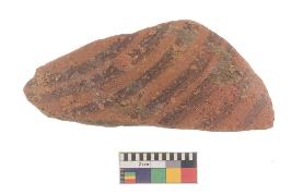 | Description / विवरण | Specimen of red ware with decorative geometric Linear Pattern painting. |