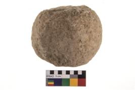 | Description / विवरण | A partially broken specimen of roughly round shaped hammer stone with battered periphery along with the circumference. |