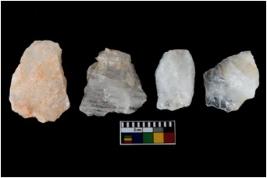 | Description / विवरण | There are n-4 of intact utilized flakes made up of Quartz. Some of them have bulge of percussion and some are flat flakes. |