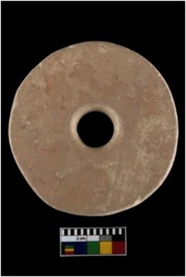 | Description / विवरण | A complete specimen of wheel. It is red in colour with perforation. |