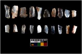 | Description / विवरण | The assemblage is made up of n 20 specimens of mesolithic blades. These are slender micro blades detached from cylindrical cores. In proportion these blades are longer wider and thicker than geometric variety of microliths. |