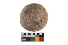 | Description / विवरण | A partially broken specimen of roughly round shaped hammer stone with battered periphery along with the circumference. |