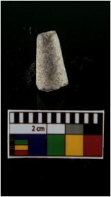 | Description / विवरण | A partially broken specimen of a red ware cylindrical object with tapering body and truncated end. Probably used as a gamesman object |