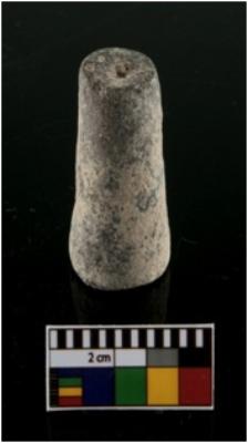| Description / विवरण | A partially broken specimen of a red ware cylindrical object with tapering body and truncated end. Probably used as a gamesman object |