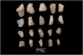 | Description / विवरण | There are n-20 of intact flake cores made up of Quartz. Some of them have bulge of percussion and some are flat flakes. |