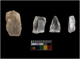 | Description / विवरण | There are n-4 of Cores. All are made of Quartz. All are fully fluted cores.3 with trace of crested ridge flake. |
