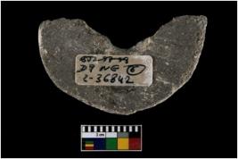 | Description / विवरण | A broken specimen of wheel. It is black in colour with perforation. |