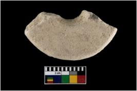 | Description / विवरण | A broken specimen of wheel. It is ochre in colour with perforation. |