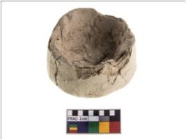 | Description / विवरण | A partially broken specimen of a terracotta toy pot. It is a small shallow vessel made by pressing the finger in a lump of clay, with flat base, thin sides, and irregular outline. It is made of grey ware, medium fabric, ill-fired. |
