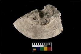 | Description / विवरण | A broken specimen of wheel. It is ochre with perforation. |