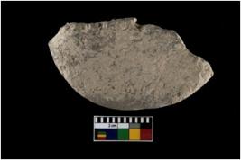 | Description / विवरण | A broken specimen of wheel. It is ochre in colour with perforation. |