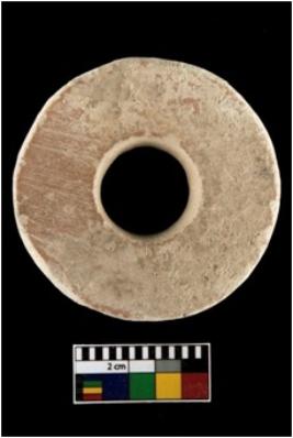 | Description / विवरण | A complete specimen of perforated disc. It is red in colour with perforation. |