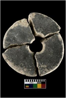 | Description / विवरण | A broken specimen of perforated disc. It is black in colour with perforation.. |