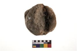 | Description / विवरण | A partially broken specimen of roughly round shaped Dabber stone with battered periphery. |